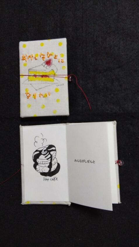 名刺サイズ(5.5㎝×9.1㎝)の絵本です。皆さんが笑顔になれるような1冊になれますように。
