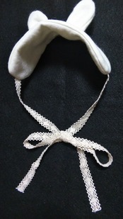 こちらは「うさぎさん」タイプです。着けるとピン!と立つ耳が可愛らしくてオススメです。ハーフバースデーにも、いかがでしょうか?
