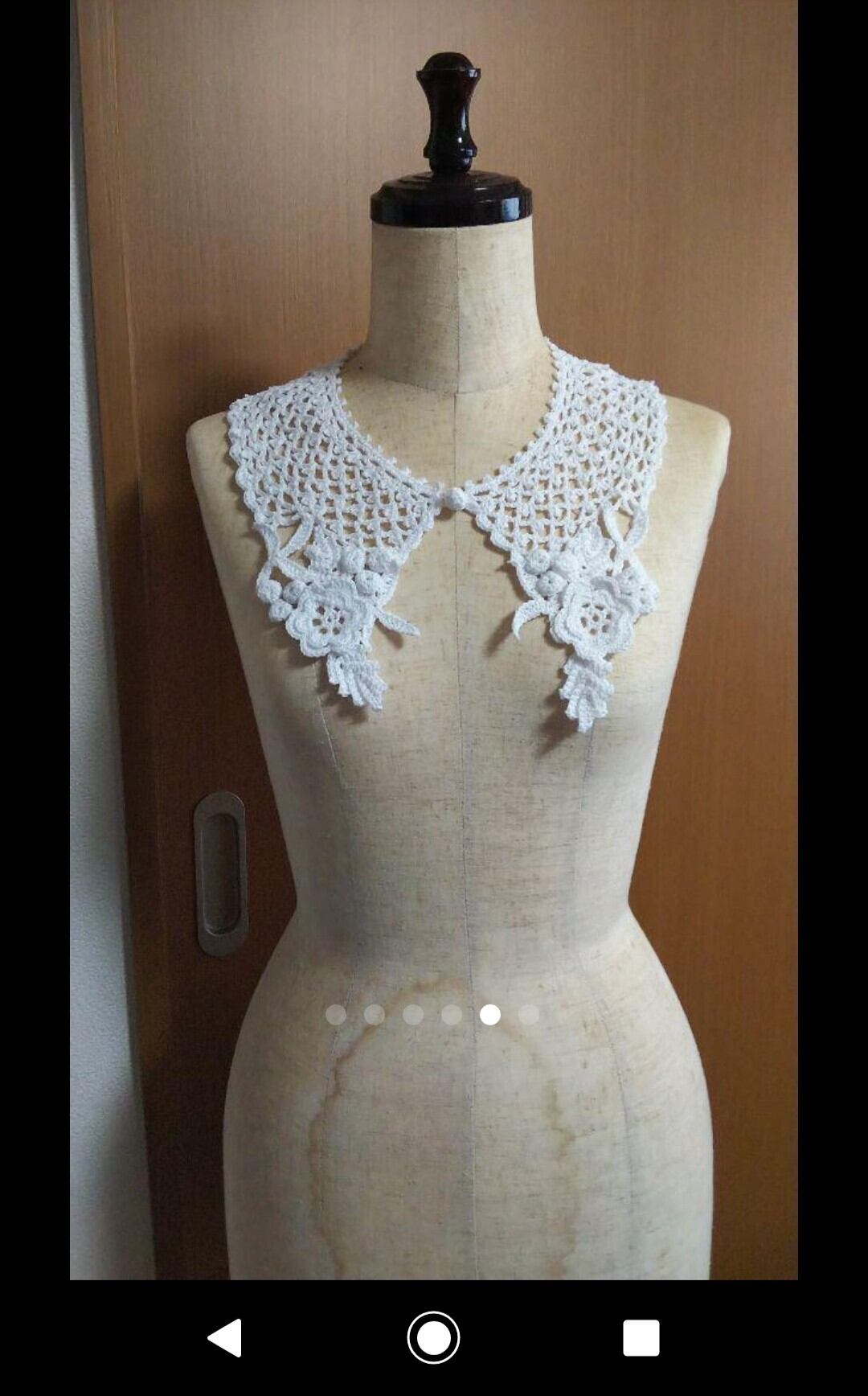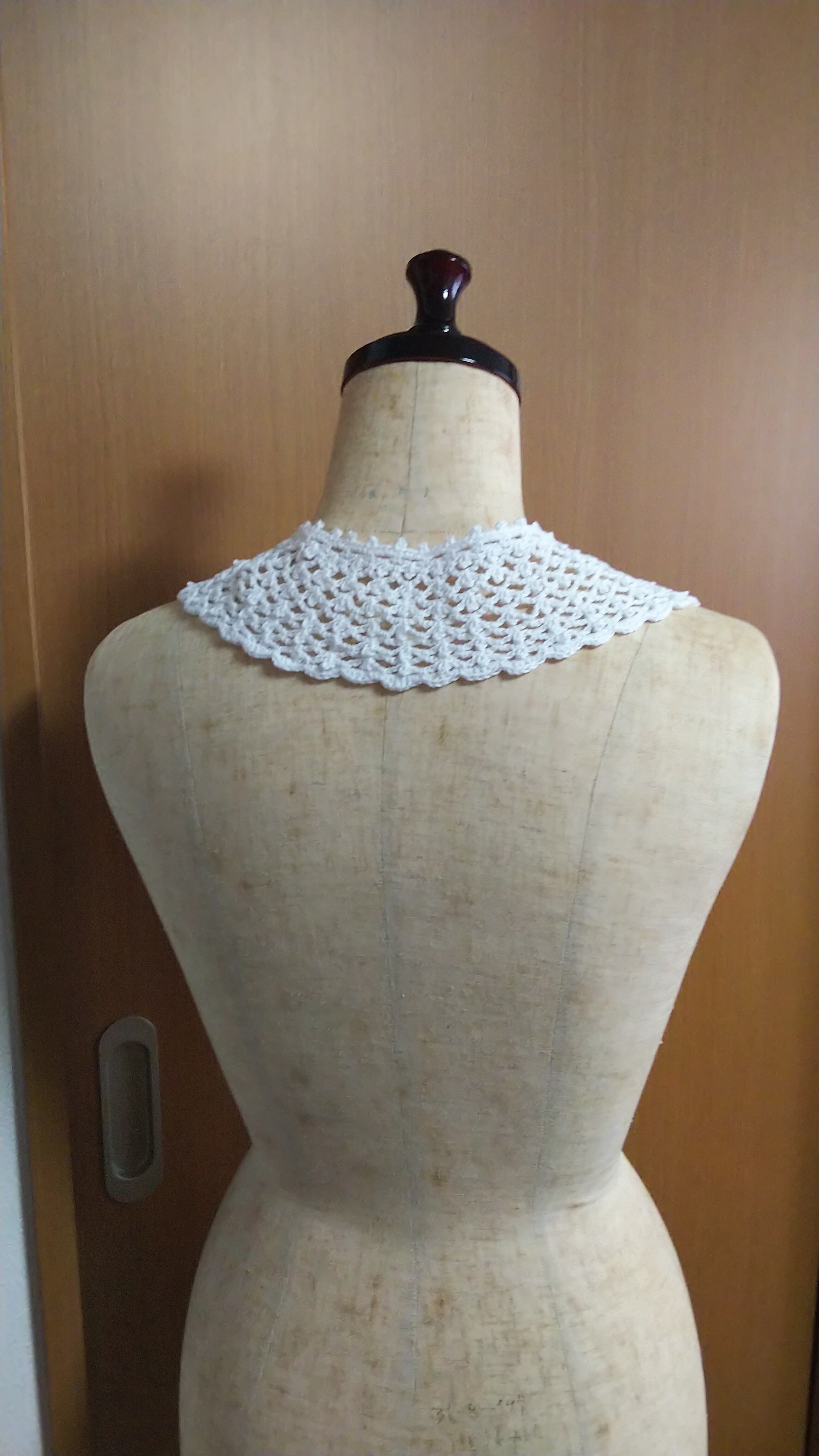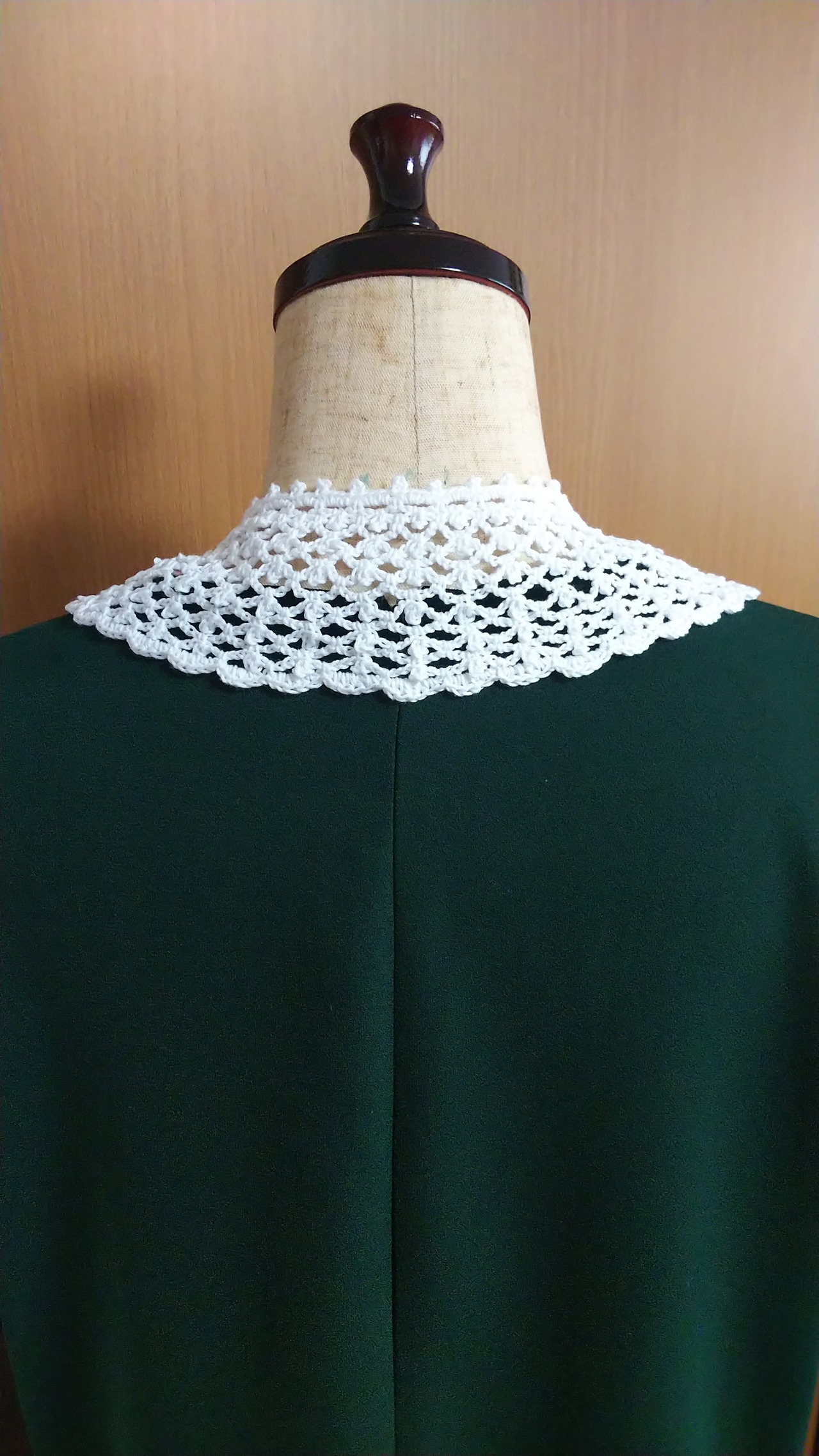 母がかぎ針で編んだ、モチーフつきのつけ襟です。別編みでモチーフを、丁寧に縫い合わせました。
