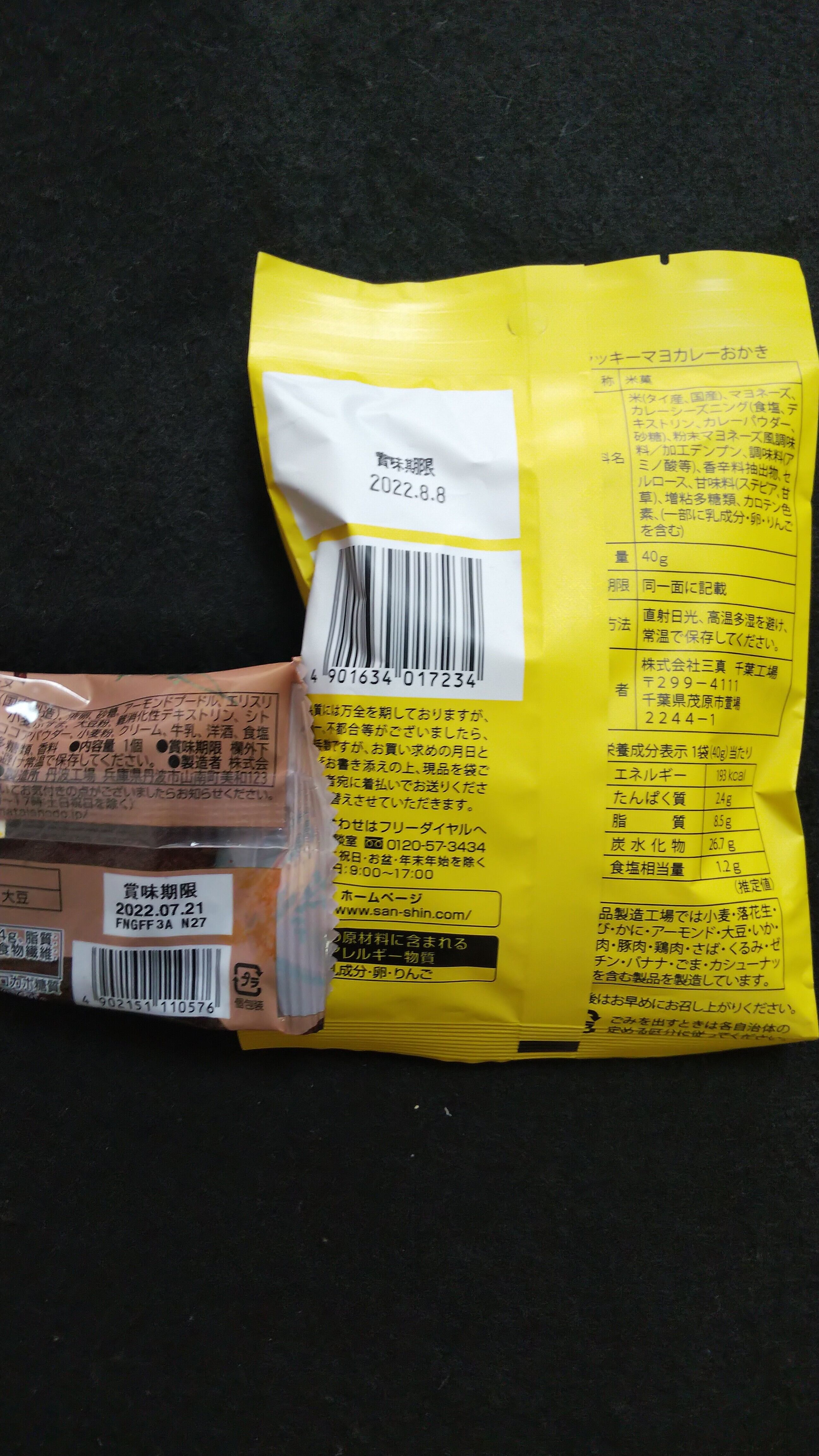 やや、真四角サイズの巾着は縦20㎝、横21㎝です。お菓子は、糖質オフのマドレーヌ(フロマージュ、ココア)とマクビティのニブルス、ラッキーマヨカレーおかきです。賞味期限は画像にてご確認ください。