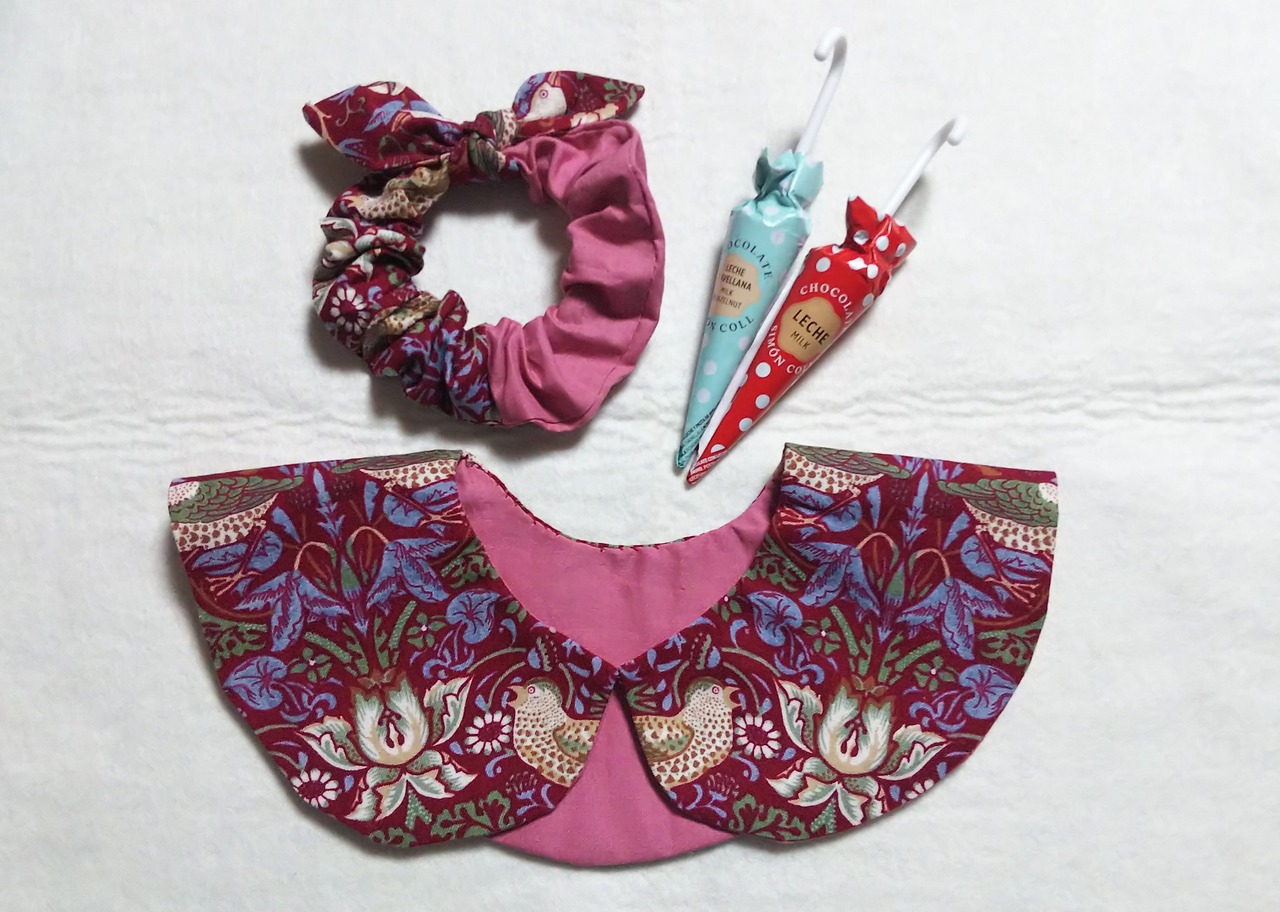 シュシュは、つけ襟とお揃いでお子様が使うのはもちろん、シュシュだけお母様または、猫を飼ってらっしゃる場合、猫ちゃんにつけても可愛いです。
