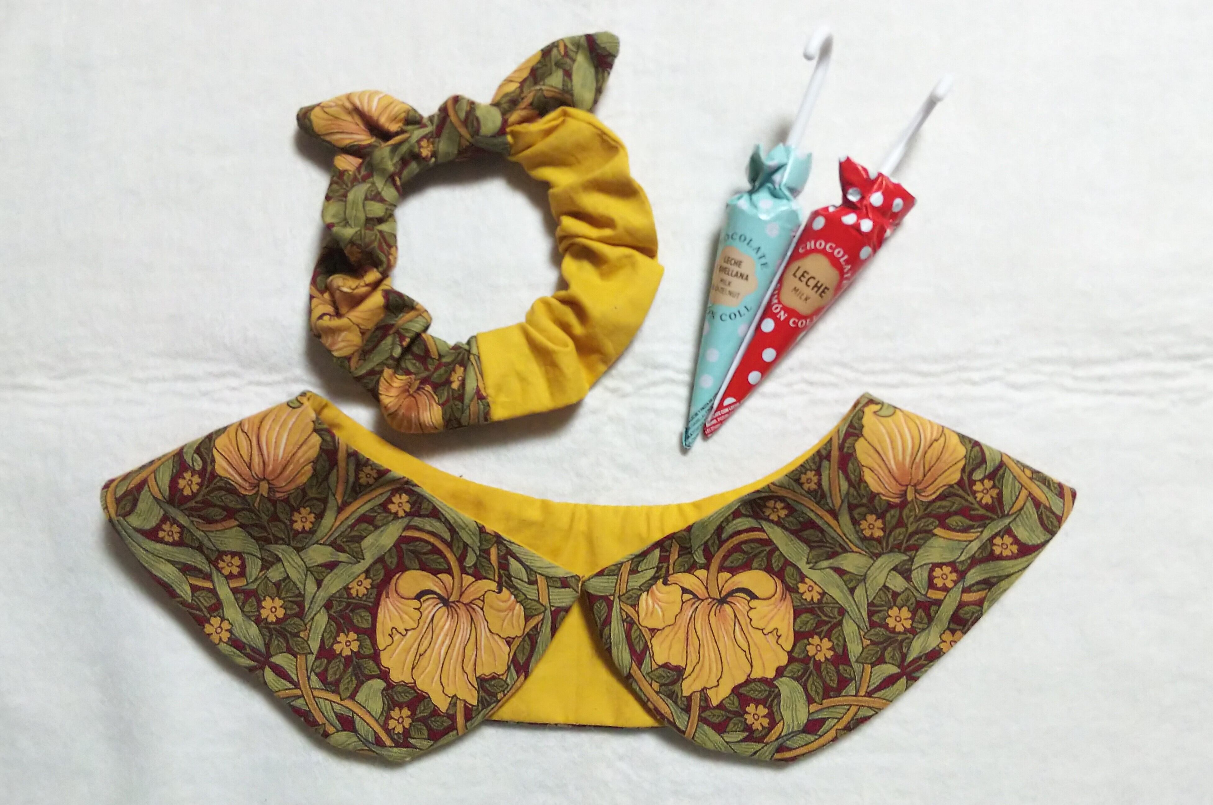 大人のつけ襟 ウイリアムモリス ピンパネル るりはこべ 可愛い シンプル 黄色 チョコレート付き